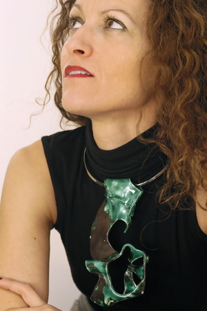 Elle est parvenue récemment à concevoir l'idée de créer par ce matériaux quelque chose de différent, et réalise des bijoux, décore des vetements, crée des nouveaux accessoires, conjougant Mode et Design.